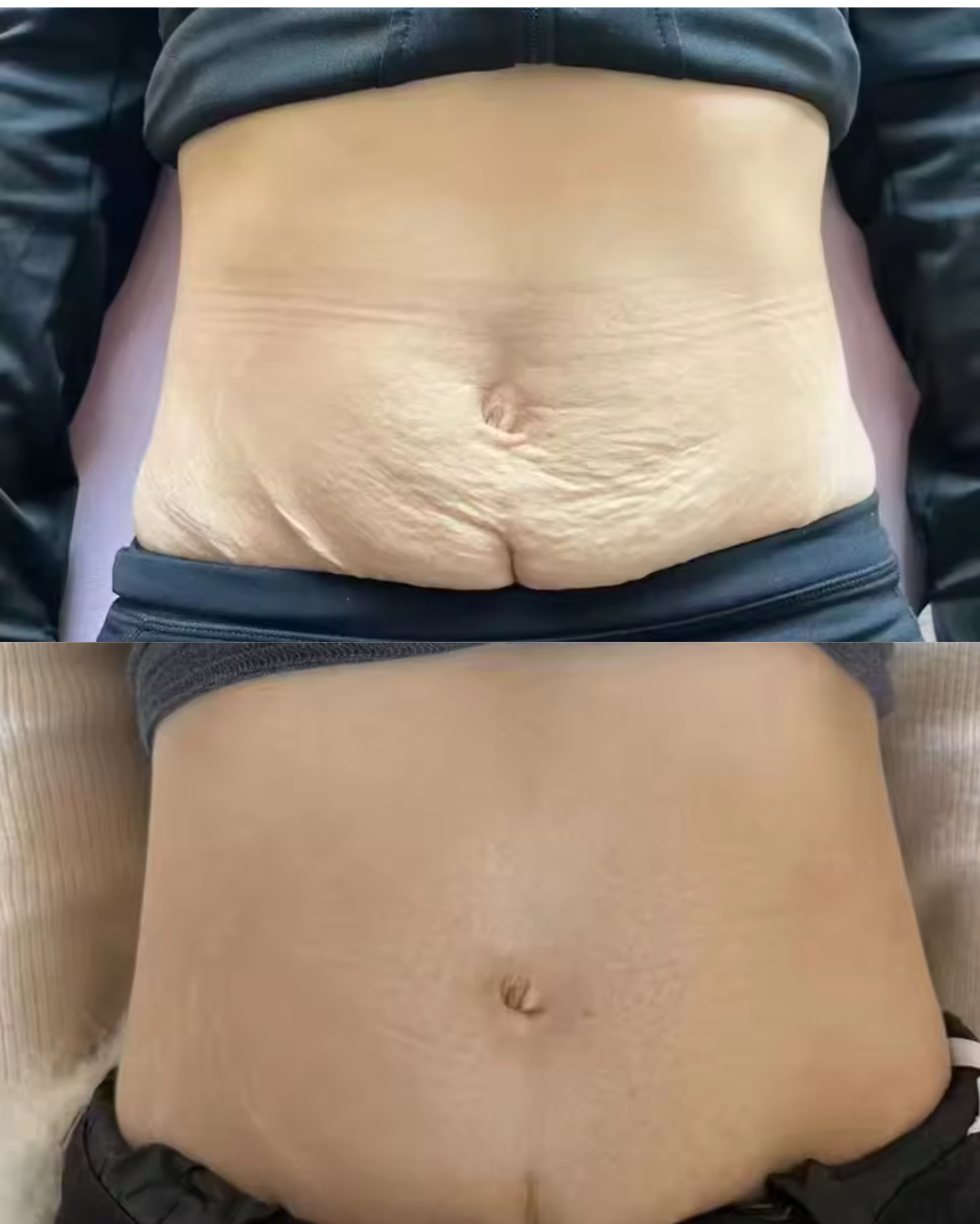 Así tenía la piel del abdomen, súper seca y flácida. Con Magic Oil mejoró caleta la hidratación y la textura, ahora se ve más firme y cuidada.